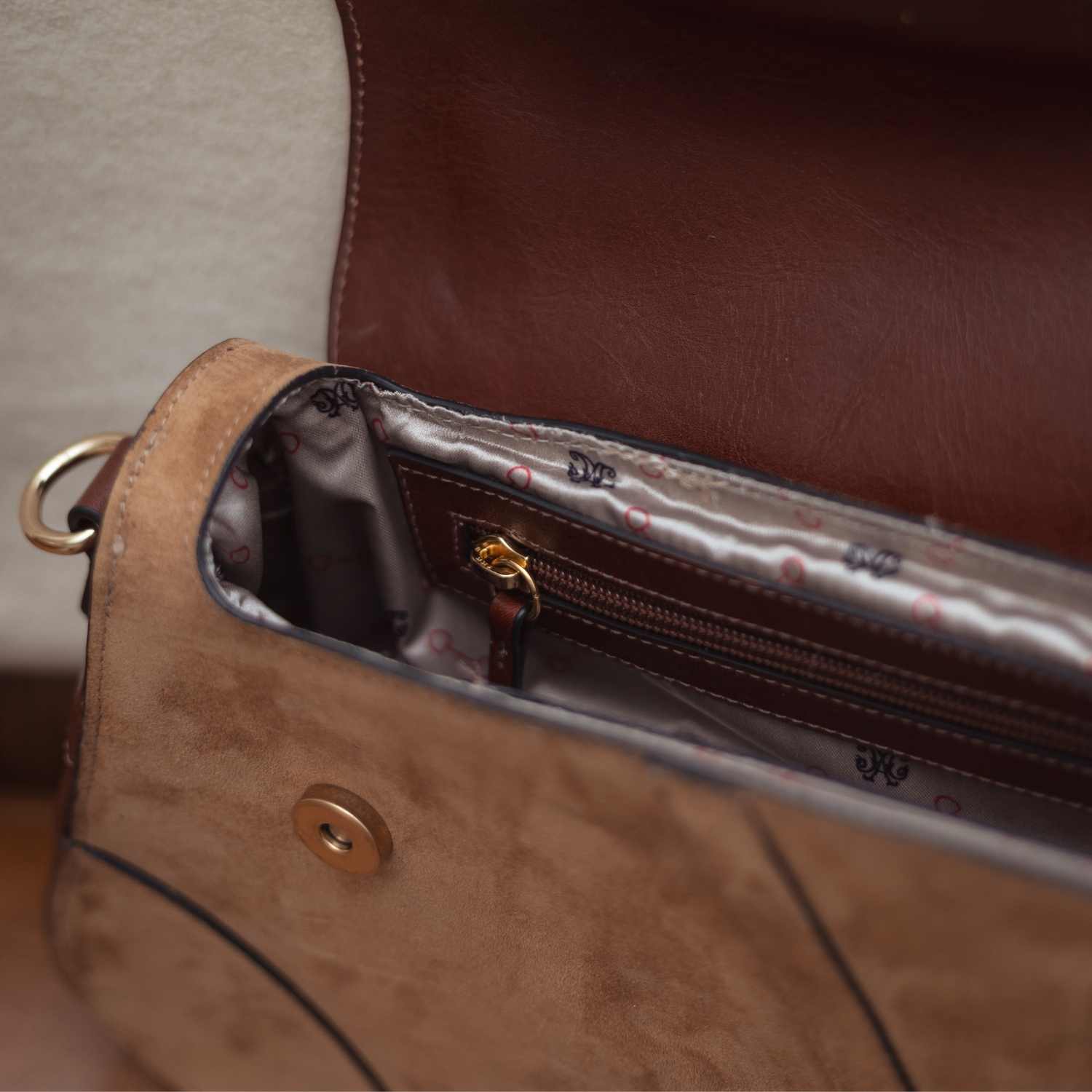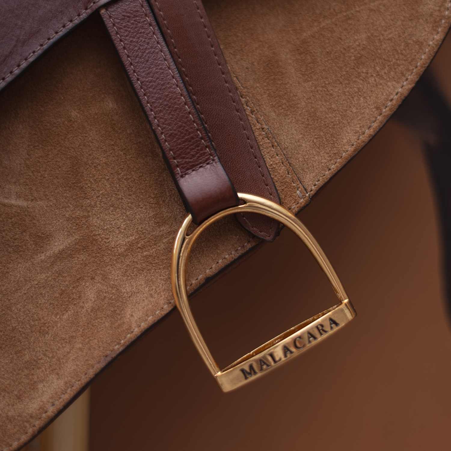 A Bolsa Basto Malacara na versão Sued carrega no desenho a força do campo e no acabamento o cuidado do feito à mão. O couro estruturado garante presença e durabilidade, enquanto os detalhes em metal dourado evocam o universo da montaria e da tradição sul americana.
