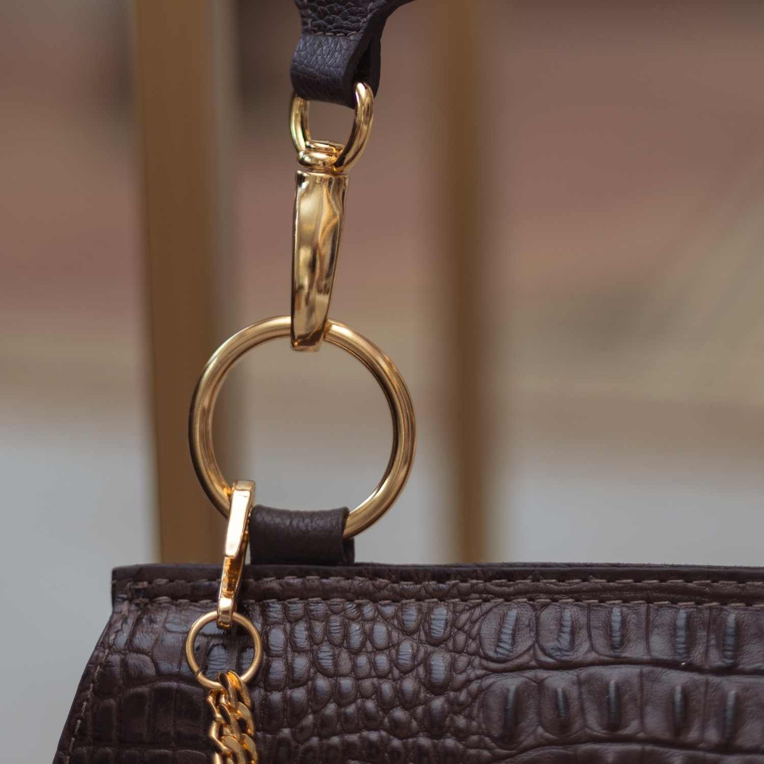A Bolsa Carijo da Malacara é uma peça sofisticada que combina elegância e personalidade. Seu design se destaca pelos metais dourados, que adicionam um toque de requinte ao modelo. O grande charme da bolsa está no estampado em Croco conferindo textura e exclusividade ao acessório.