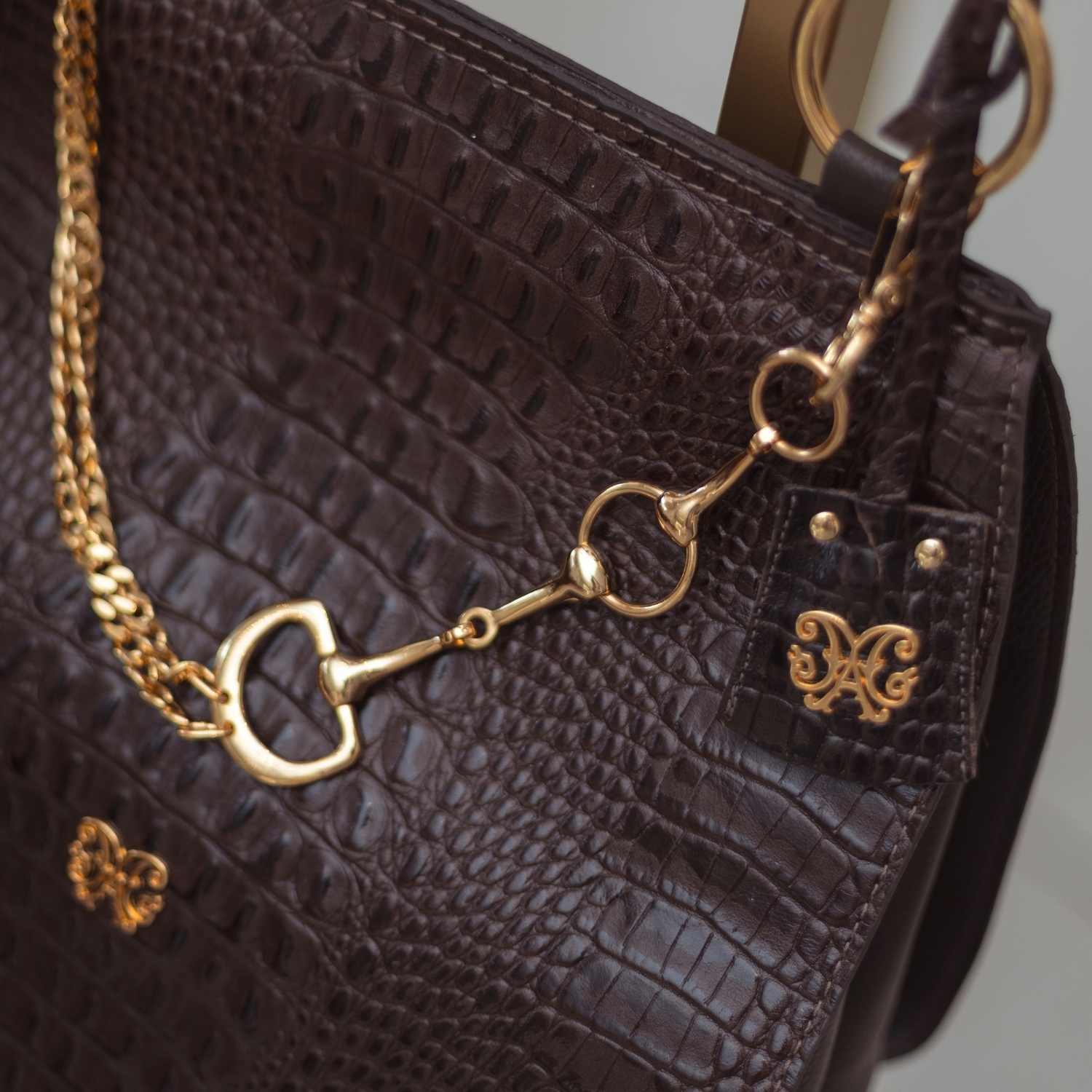 Na parte da frente, o bridão estilizado em metal dourado se torna um detalhe marcante, reforçando a identidade e o estilo da peça. Confeccionada inteiramente em couro nobre, a Bolsa Carijo alia durabilidade e sofisticação. O interior conta com um forro acetinado, garantindo um acabamento impecável.