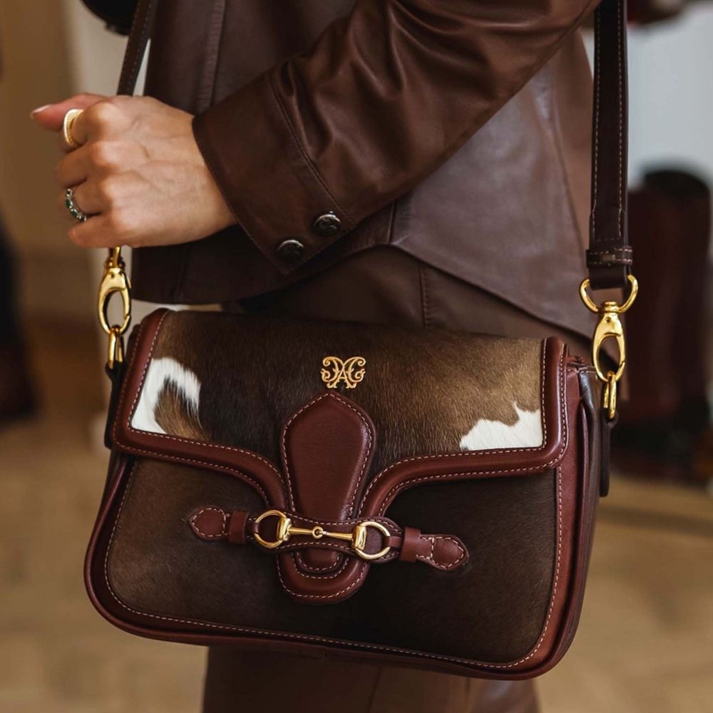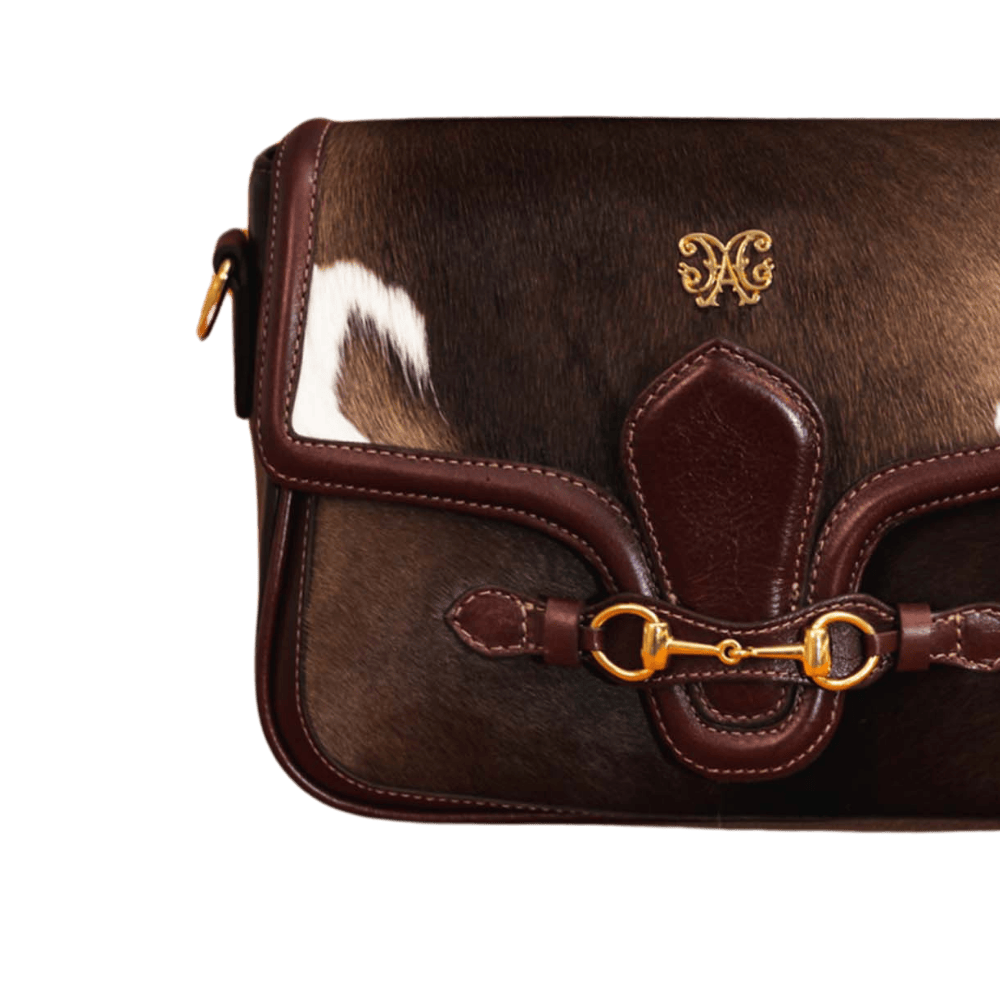 Os metais dourados acrescentam um toque refinado, enquanto o logo Malacara na tampa frontal, combinado ao bridão estilizado em metal, reforça a identidade marcante da peça. O fechamento prático por ímã garante segurança e facilidade no uso, tornando-a funcional para diversas ocasiões.