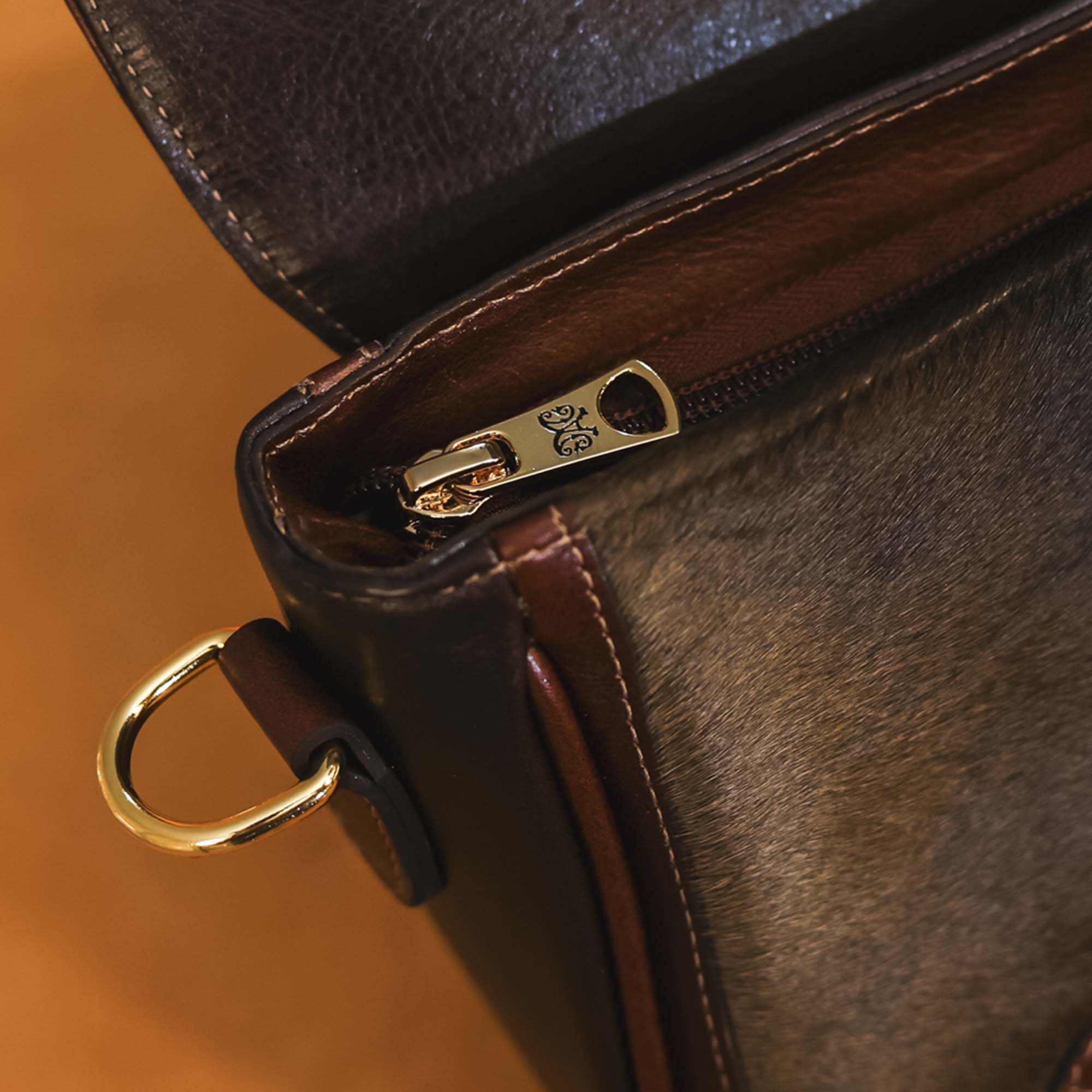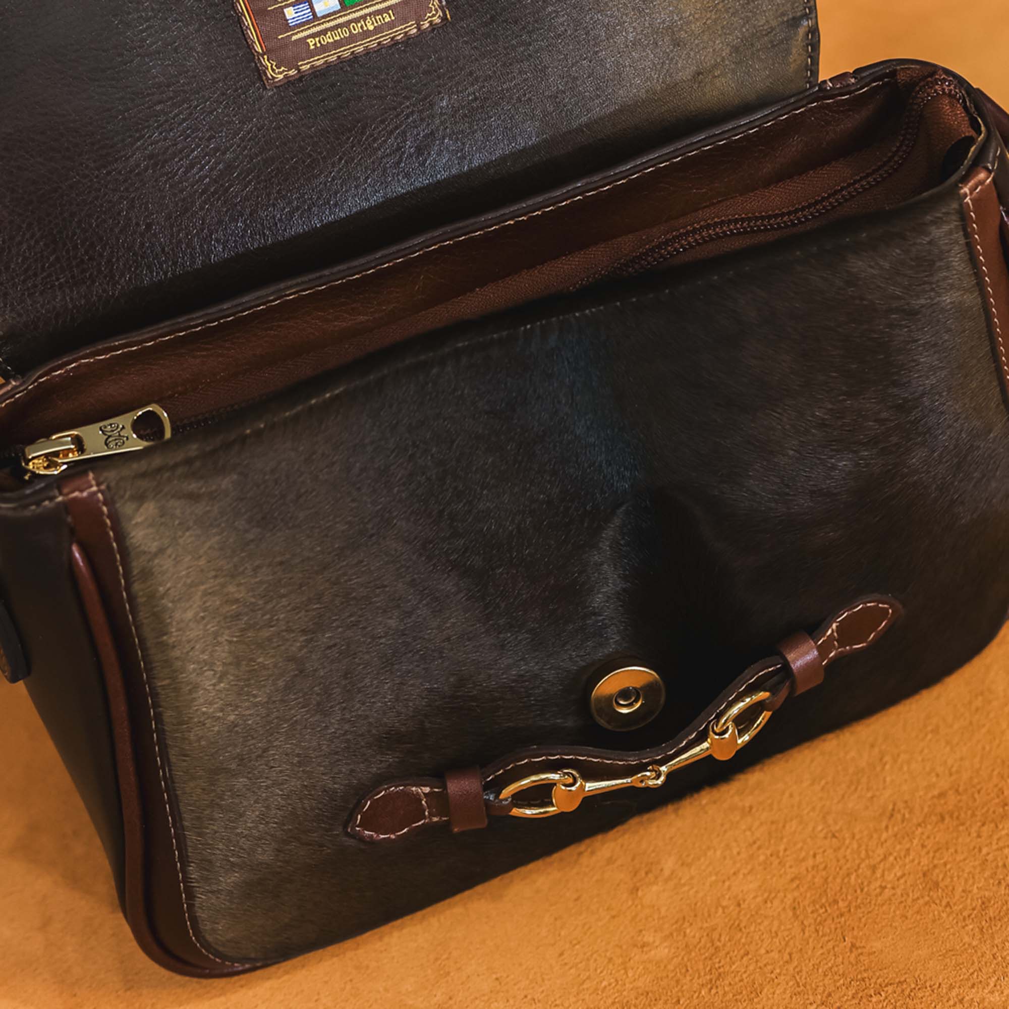 A Bolsa Farroupilha é a expressão máxima de tradição e sofisticação. Seu grande charme está no corpo frontal, produzido em pêlo original, parte da exclusiva coleção Origens, que traz autenticidade e personalidade ao modelo.