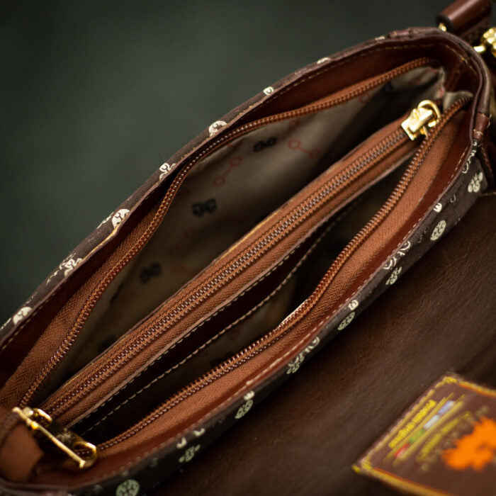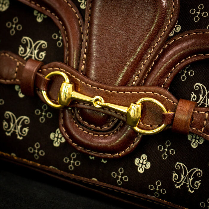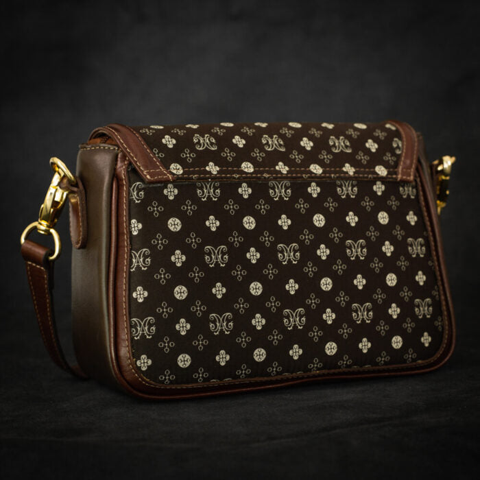 Os metais dourados acrescentam um toque refinado, enquanto o logo Malacara na tampa frontal, combinado ao bridão estilizado em metal, reforça a identidade marcante da peça. O fechamento prático por ímã garante segurança e facilidade no uso, tornando-a funcional para diversas ocasiões.