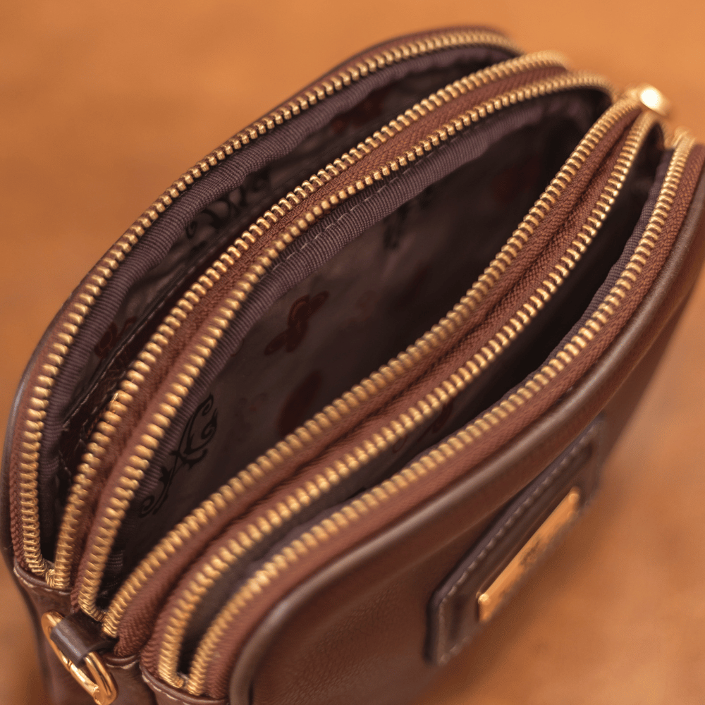 Seu formato estruturado, com três compartimentos independentes e acabamento em ferragens douradas, garante organização e estilo em qualquer ocasião. Pode ser usada a tiracolo ou na transversal, acompanhando o ritmo de quem valoriza o detalhe artesanal e o design atemporal.