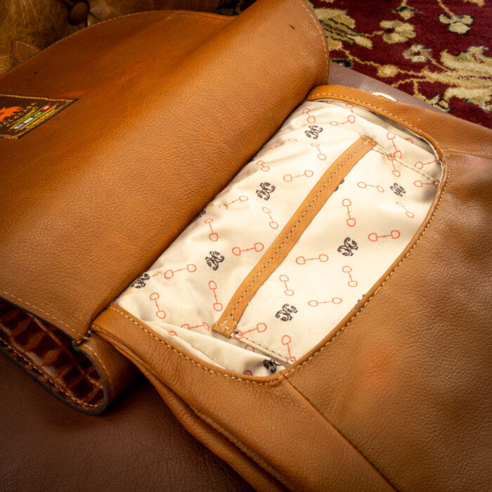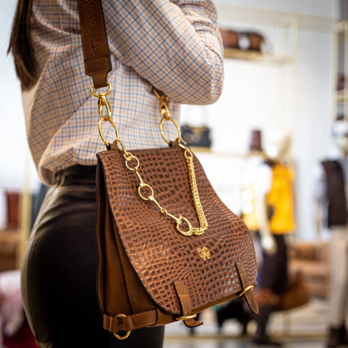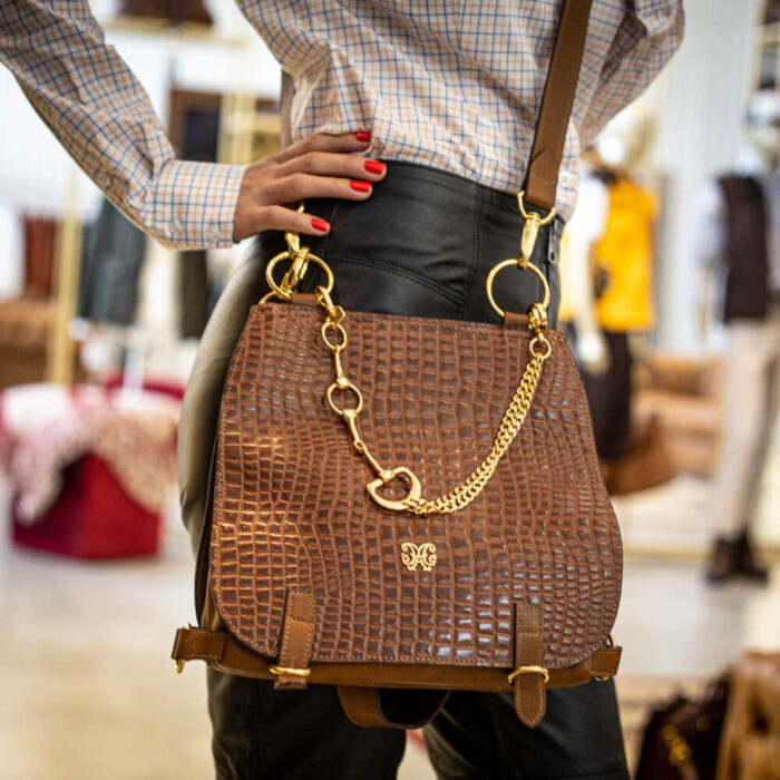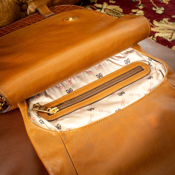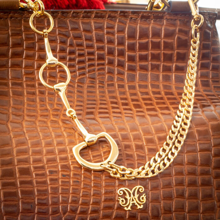 Na parte da frente, o bridão estilizado em metal dourado se torna um detalhe marcante, reforçando a identidade e o estilo da peça. Confeccionada inteiramente em couro nobre, a Bolsa Carijo alia durabilidade e sofisticação. O interior conta com um forro acetinado, garantindo um acabamento impecável.