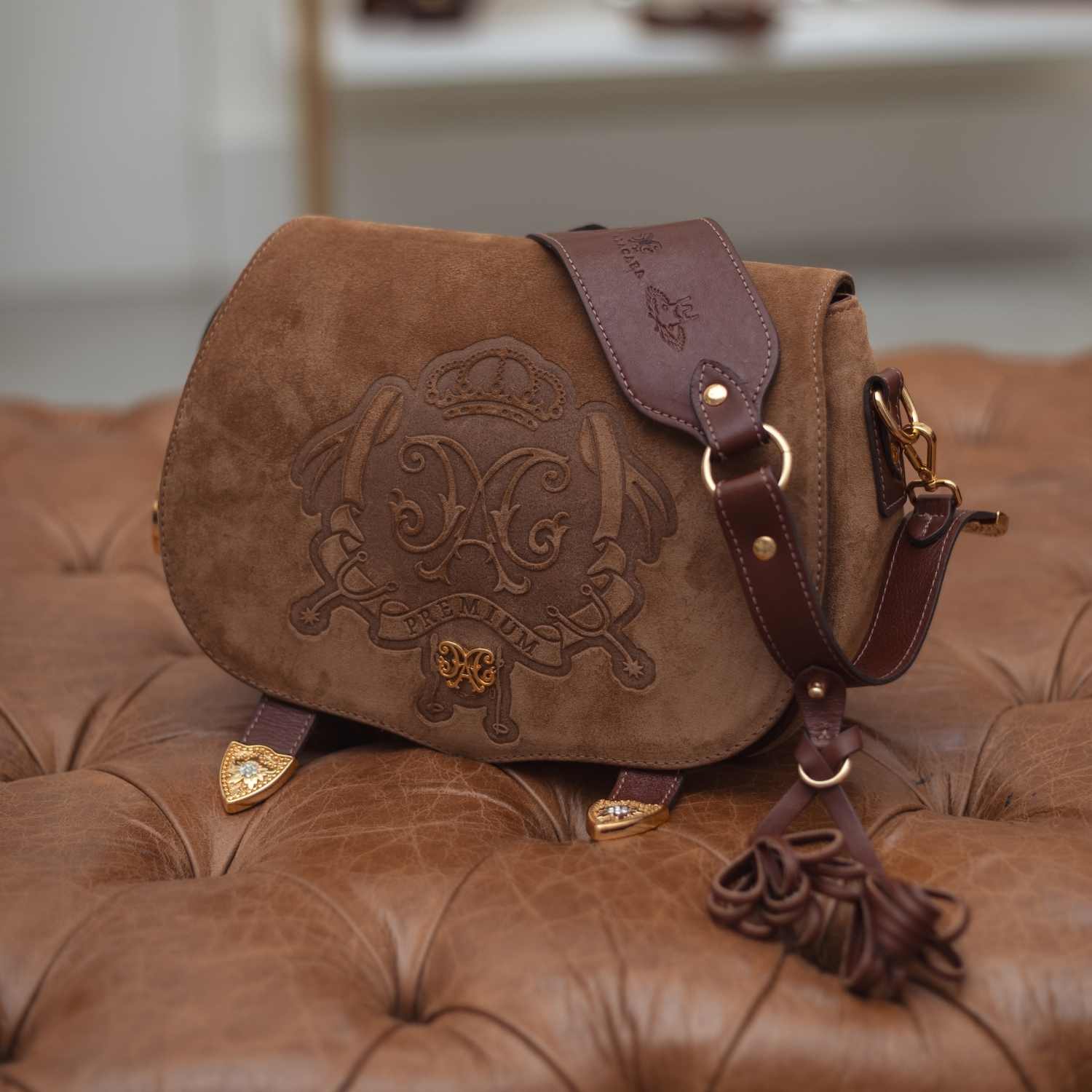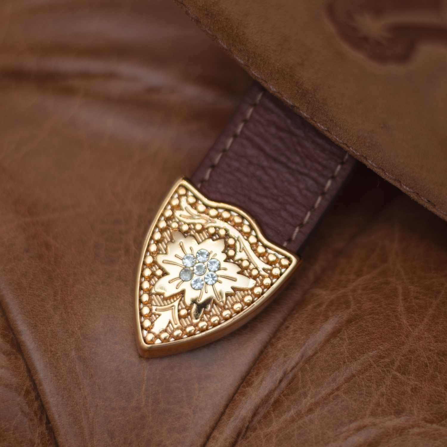 A alça ajustável permite diferentes formas de uso, enquanto os metais dourados e os detalhes artesanais reforçam o caráter premium da peça. Uma bolsa pensada para mulheres que conduzem seu próprio ritmo, com estilo firme e sensível ao mesmo tempo.