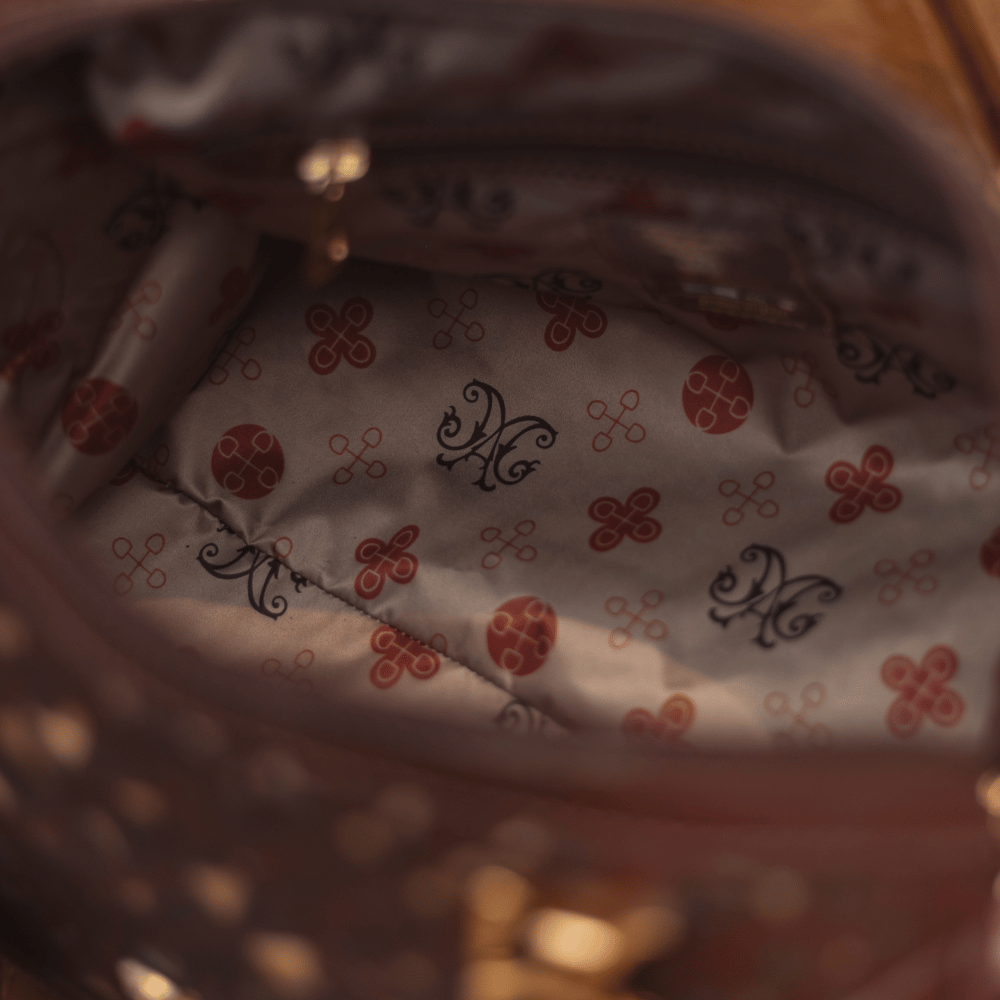 A bolsa Rosaflor da Malacara é uma bolsa criada para mulheres que apreciam elegância com personalidade. Seu couro de alta qualidade, aliado ao trabalho artesanal do recorte a laser, revela um desenho orgânico e cheio de movimento, formando um contraste sofisticado com o brilho metalizado do fundo.