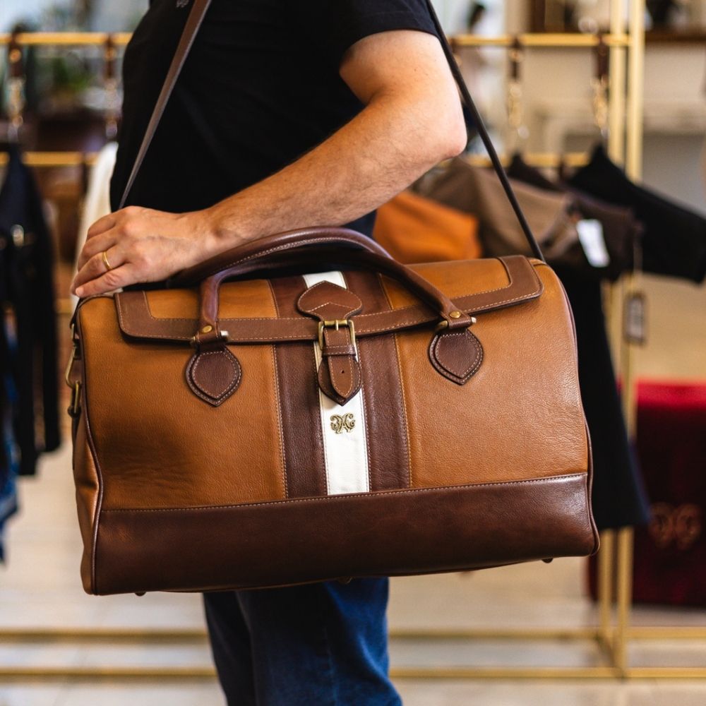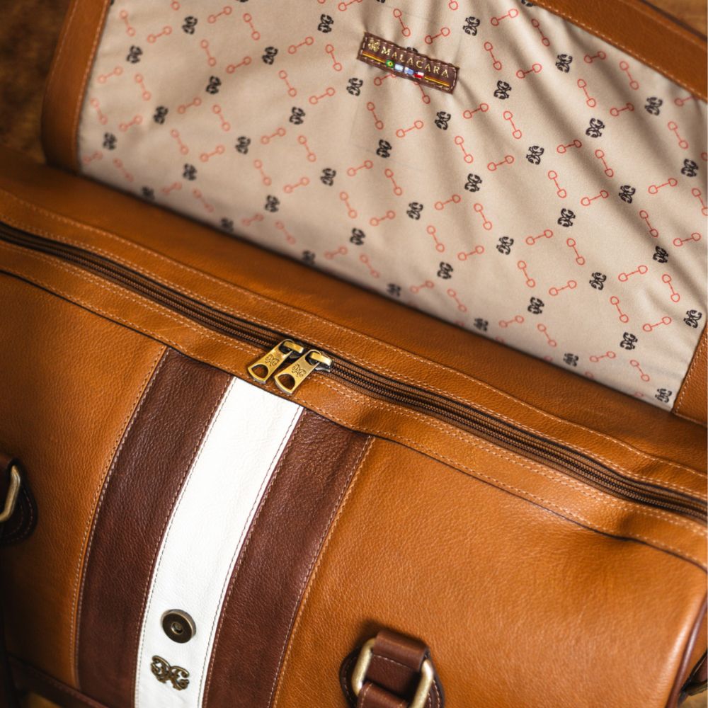 A mala oferece duas opções de alça: pode ser usada a tiracolo para maior comodidade ou com as alças de mão para um toque mais clássico. Confeccionada em couro nobre e com forro acetinado, a Mala de Viagem Chasqueiro é a escolha perfeita para quem deseja unir estilo, qualidade e praticidade em seus momentos de viagem.