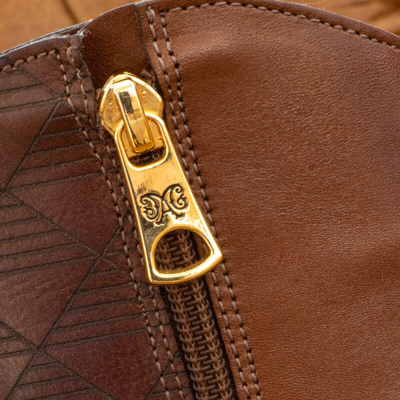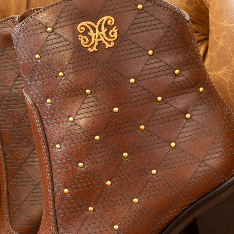 A verdadeira magia da Bota Munay está nos detalhes. A gravação a laser no couro cria padrões intrincados e desenhos exclusivos, que elevam ainda mais o visual. Os cravos dourados no cabedal adicionam um toque de ousadia, tornando a bota Bota Munay uma escolha perfeita para ocasiões especiais ou para quem deseja expressar sua individualidade na moda cotidiana.