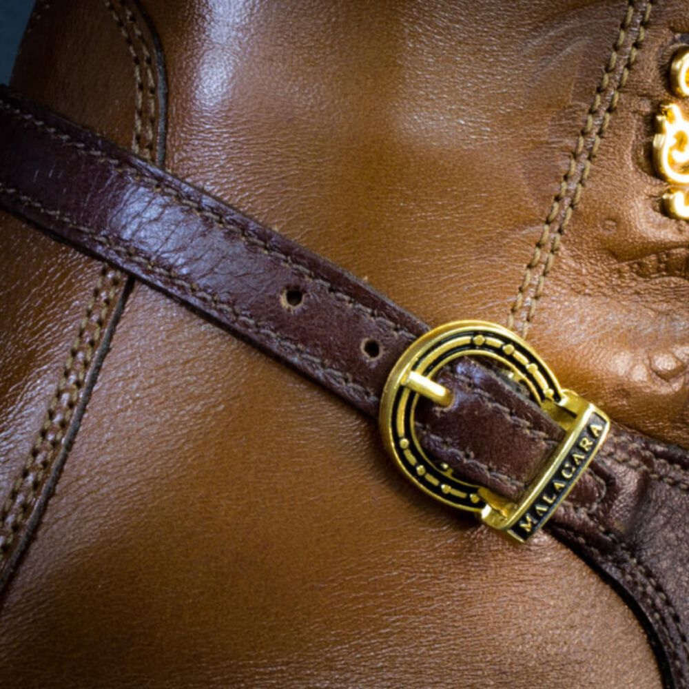 O destaque fica por conta da fivela em forma de ferradura, um símbolo de força e sorte, que traz o logo da nossa marca como assinatura de qualidade e tradição.
