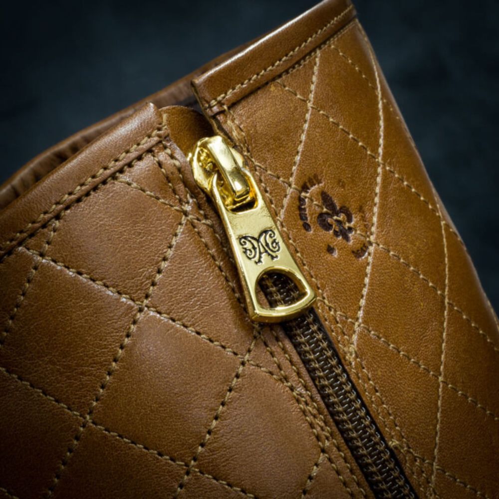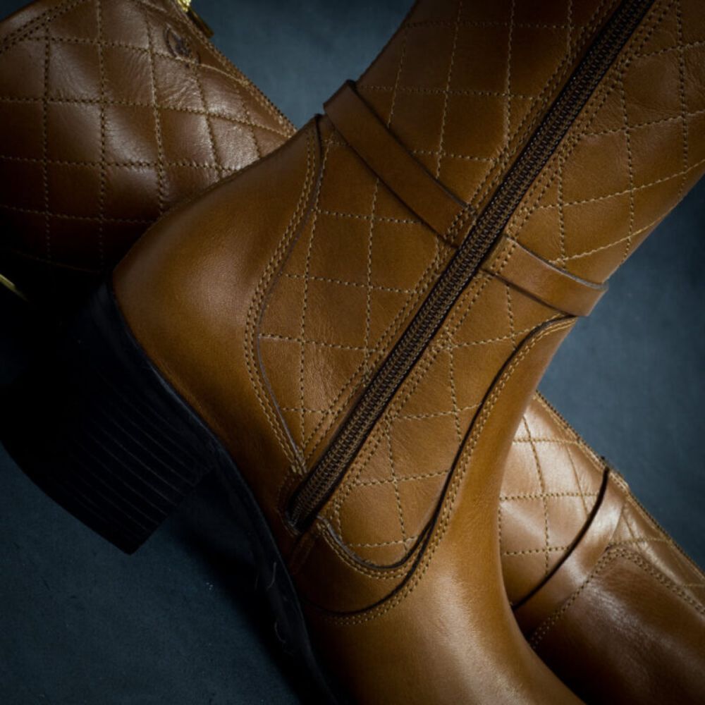 A Bota Compay Matelassê, inspirada na tradicional Montaria, se distingue pelo salto Compay, que adiciona sofisticação. O cano com costuras matelassê realça a textura e elegância, enquanto o zíper interno facilita o calce. O forro macio garante conforto, e os metais dourados, aplicados com sutileza no tornozelo e topo do cano, destacam a exclusividade do design.