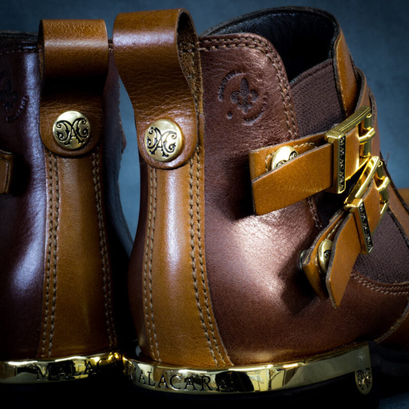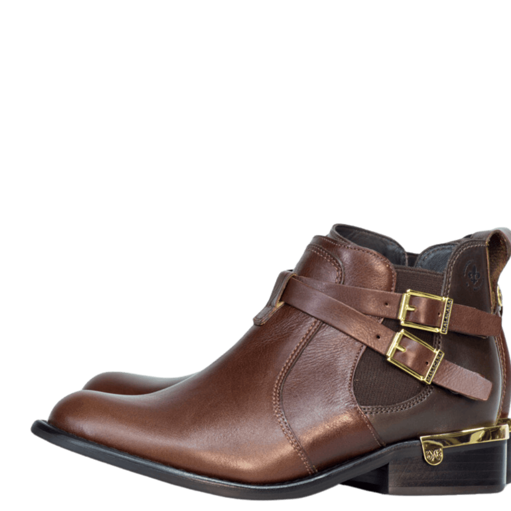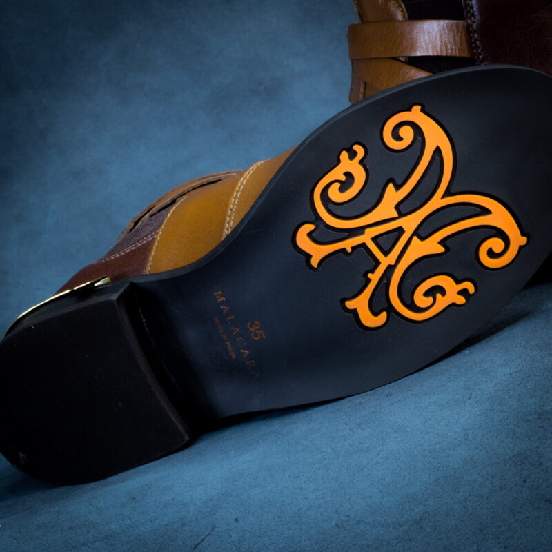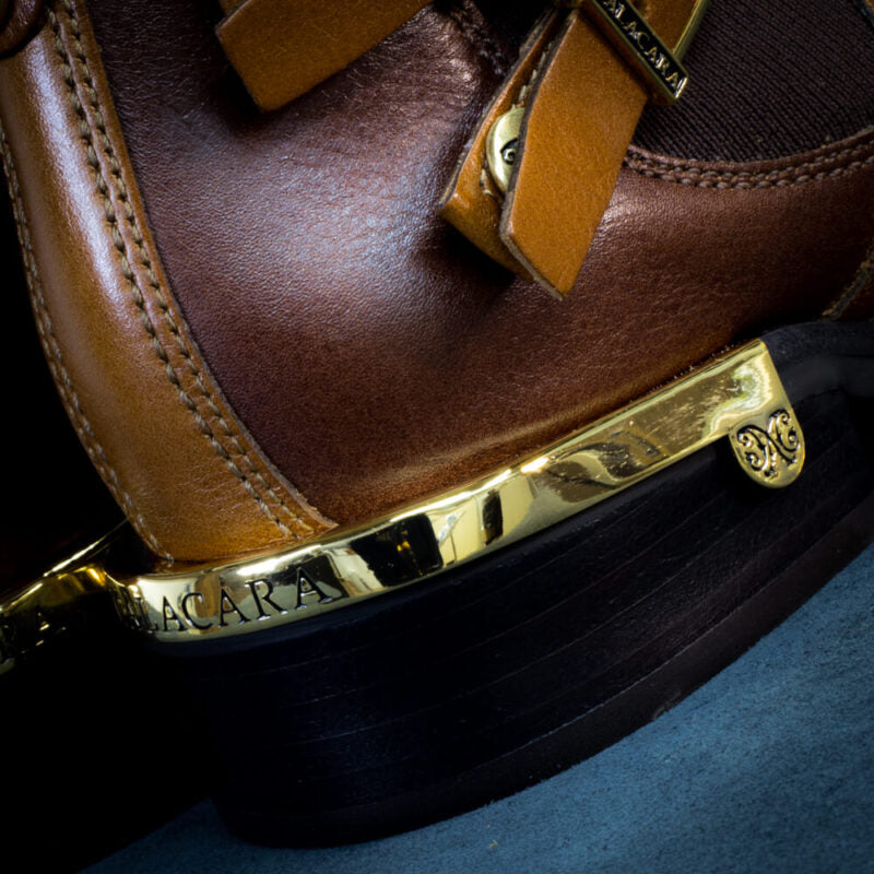A Bota Farroupilha, com cano curto e salto montaria, combina a versatilidade da bota montaria com a leveza e conforto do cano curto, sendo ideal para todas as estações. Sem zíper, conta com elásticos laterais para facilitar o calce. Seu design é enriquecido com fivelas douradas e tiras de couro ajustadas com botão de pressão, oferecendo firmeza. A assinatura da marca no metal dourado do salto adiciona um toque de elegância discreta, tornando-a um clássico da Malacara.