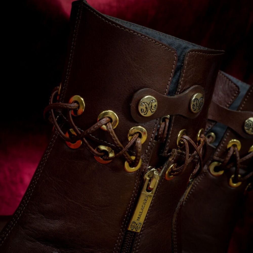 A Bota Montaria Lorena é uma das peças mais modernas da coleção, destacando-se pelos ilhoses metálicos que criam um visual marcante e contemporâneo. Com zíper interno para facilitar o calce e botão de pressão que adiciona sofisticação discreta, ela combina estilo arrojado com o conforto do couro legítimo. Uma escolha perfeita para quem busca modernidade, conforto e a identidade única da Malacara.