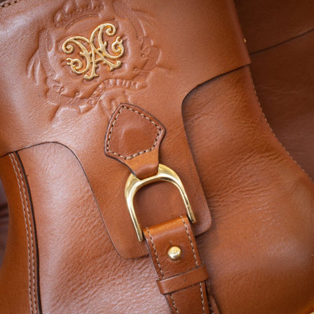 A Bota Estribo une estilo e conforto em um design inspirado no modelo Sincerro. Com zíper interno para fácil calce e forro aconchegante, destaca-se pelos metais dourados no salto e pelo detalhe que remete ao estribo, homenageando as botas de montaria. A assinatura da marca no cano reforça sua autenticidade e charme.