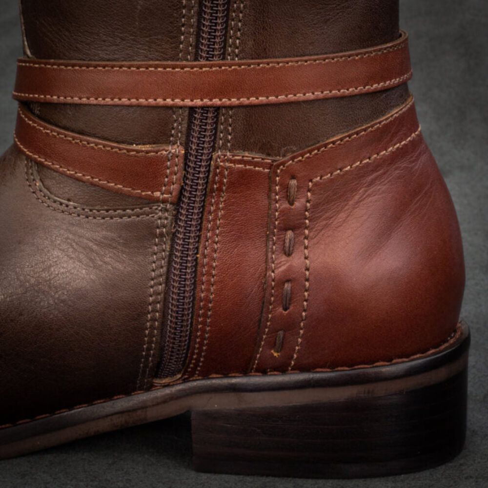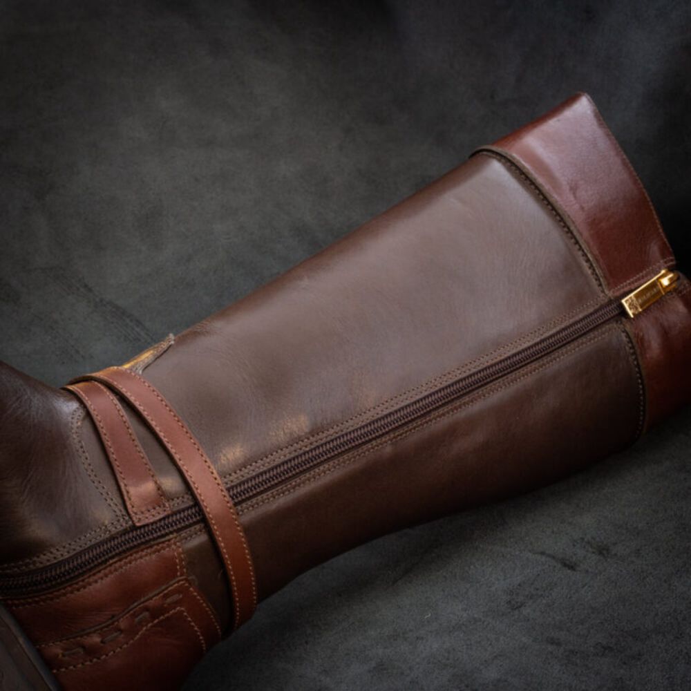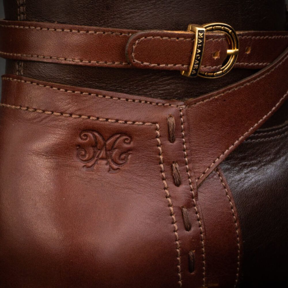 A Montaria Jarau combina o design clássico da bota de montaria com a feminilidade moderna. Confeccionada em couro legítimo com solado Malacara, possui cano longo e zíper interno para facilitar o calce. Detalhes em couros de dois tons, costuras manuais e metais com a assinatura da marca adicionam sofisticação, enquanto o dourado no salto finaliza com elegância discreta.