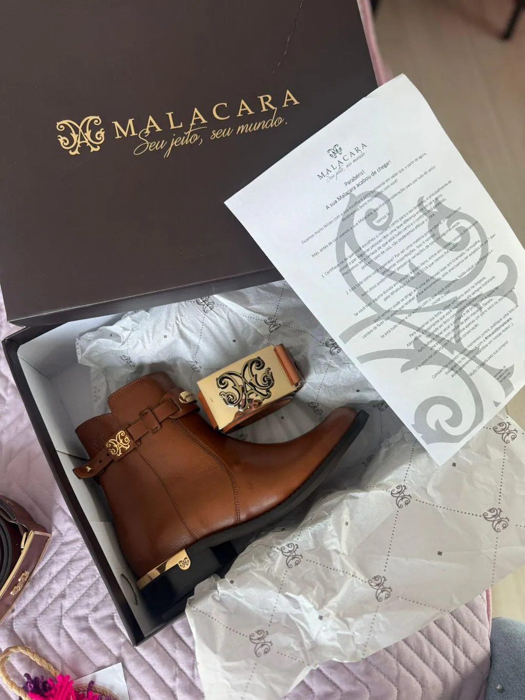 Com design inspirado na tradição equestre, as Botas Montaria Malacara trazem sofisticação clássica, adaptando-se tanto a looks casuais quanto refinados. Feitas em couro legítimo, são de alta qualidade, moldando-se ao formato dos pés e proporcionando conforto duradouro e estabilidade. Essa coleção é uma escolha que une classe, resistência e conforto, perfeita para mulheres que valorizam seu estilo em cada passo.