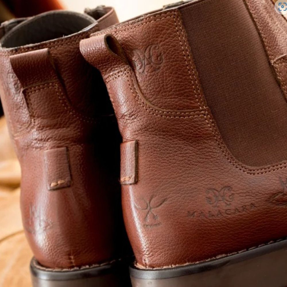 O solado de borracha traz casualidade e leveza e os carimbos laterais firmam a assinatura Malacara.