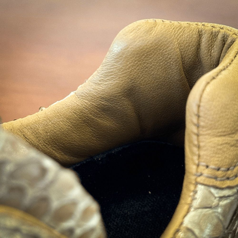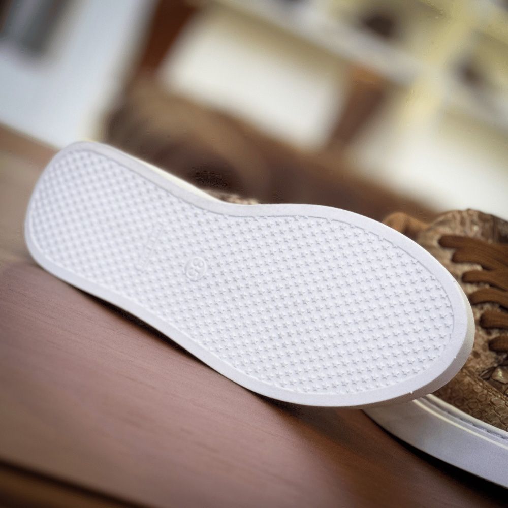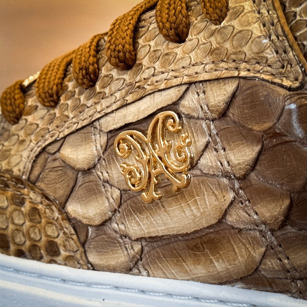 As texturas marcantes do couro de python são o coração da coleção, com suas escamas naturais que revelam uma beleza selvagem e inigualável. Cada par é único, trazendo uma personalidade distinta, definida pelas nuances orgânicas que só o couro python pode oferecer.