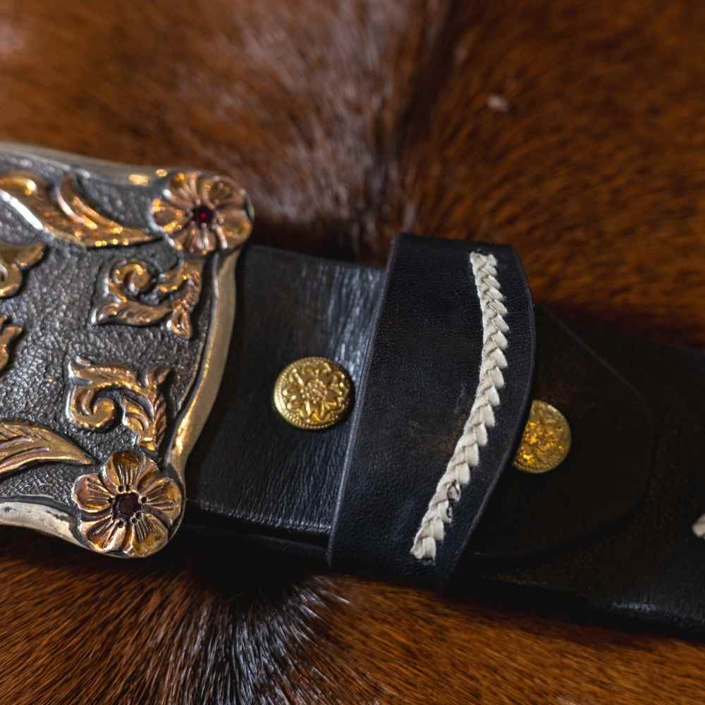 O Cinto Pica-Pau Verão é uma obra-prima da tradição artesanal, feito inteiramente à mão em couro bovino e com detalhes da tira em couro cru lonca de cabra num desenho que lembra a flora viva do verão.