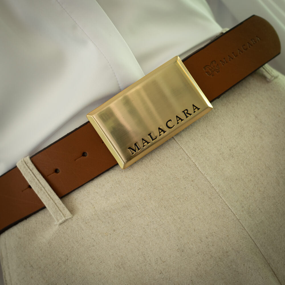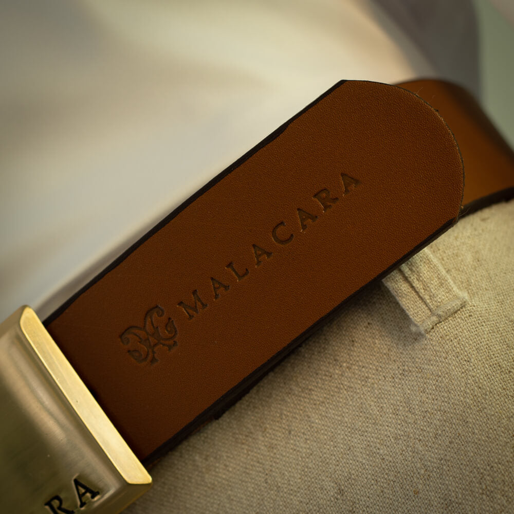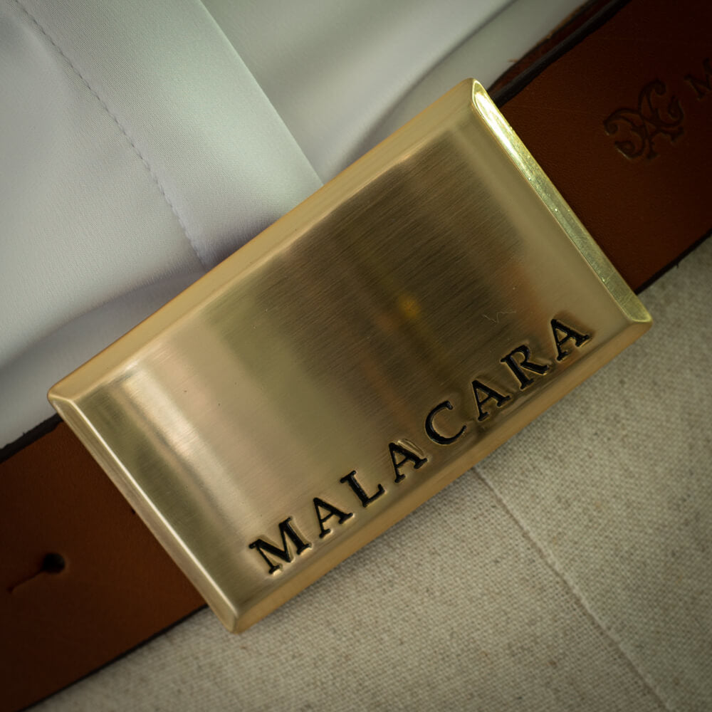 Confeccionado em couro legítimo, o destaque fica por conta da fivela retangular dourada escovada, gravada com o nome Malacara em baixo-relevo. Uma peça versátil, que transita do urbano ao tradicional com facilidade.