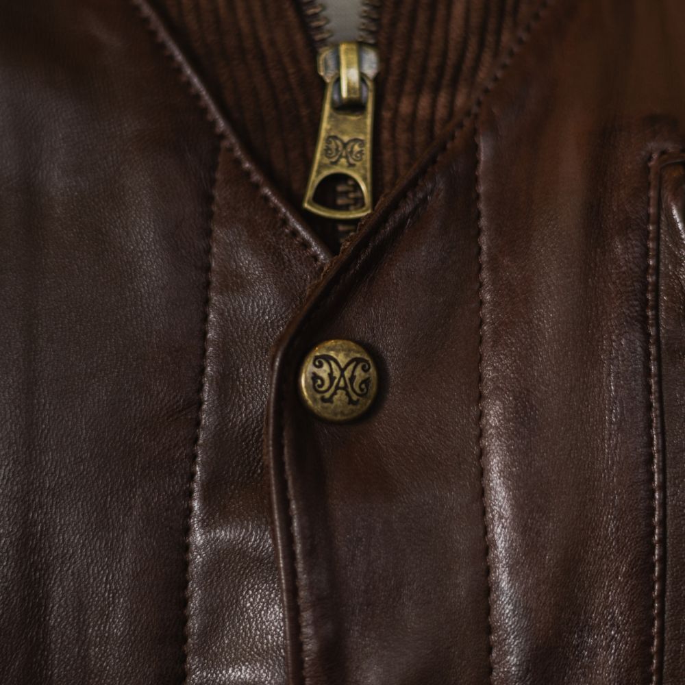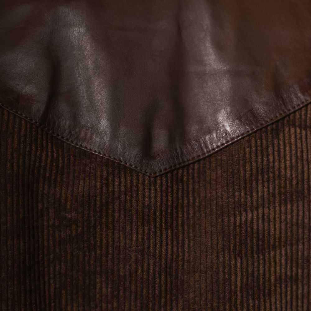 A combinação harmoniosa entre o couro e o veludo proporciona uma peça versátil e elegante, perfeita para compor looks tanto casuais quanto sofisticados, sempre com um toque de personalidade.