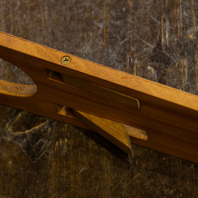 A peça é toda feita em madeira, com logotipo Malacara em metal.