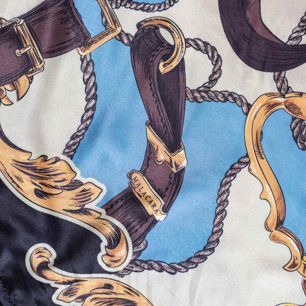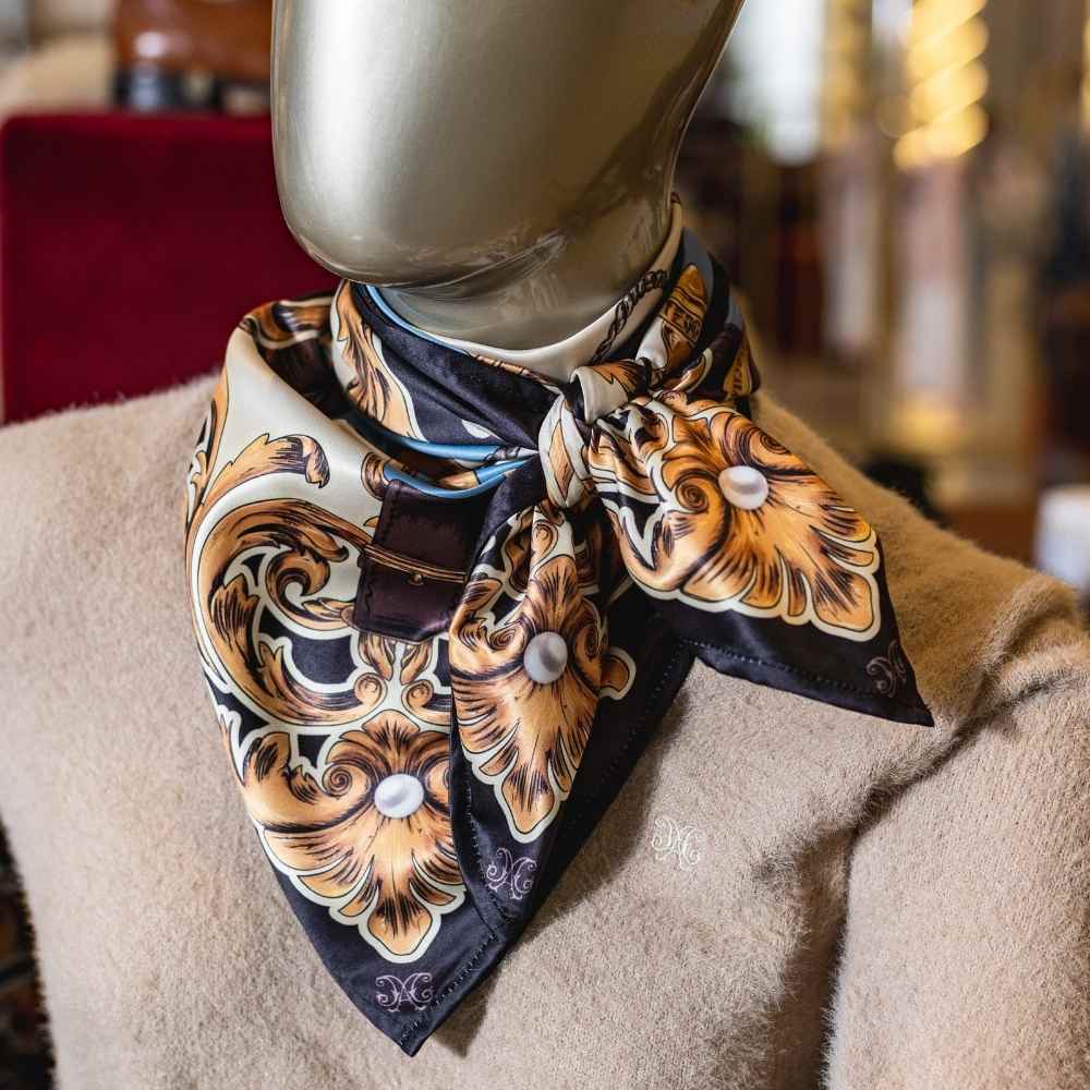 Produzido em cetim macio com acabamento primoroso, o lenço Ana apresenta uma coleção de estampas exclusivas inspiradas no universo equestre. Com tamanho amplo (90x90 cm) e toque sofisticado, é perfeito para ser usado de diversas formas: no pescoço, nos ombros, na cabeça, como cinto ou até mesmo como peça de destaque em bolsas e acessórios. Uma peça versátil e marcante, pensada para quem gosta de compor looks com personalidade.
