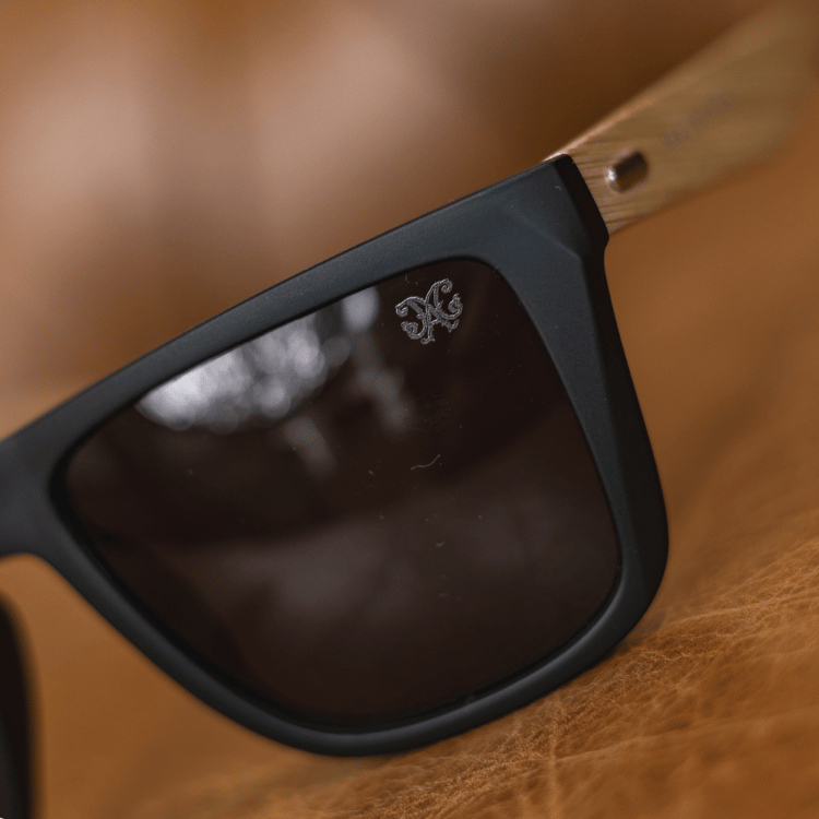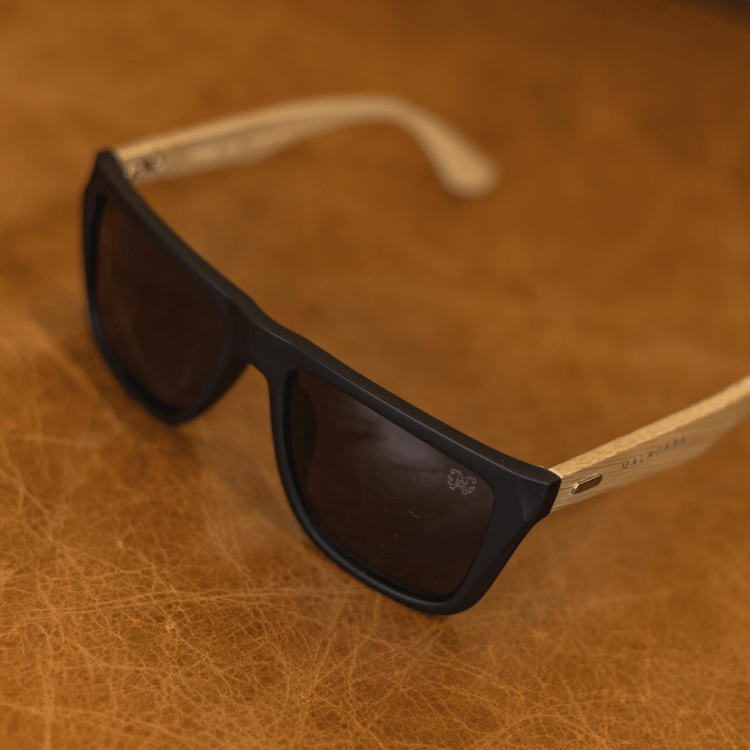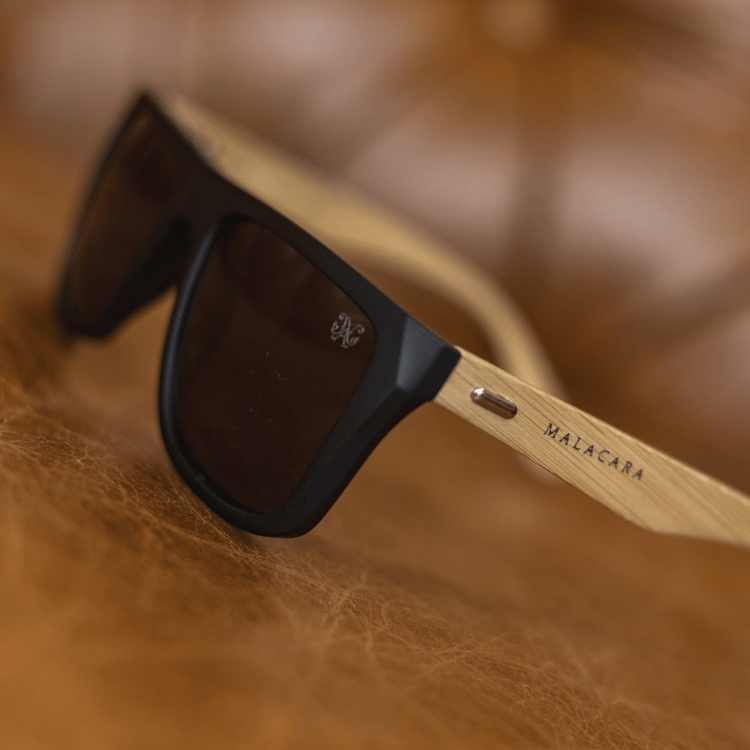 O logo Malacara gravado na lente reforça a exclusividade e o cuidado nos mínimos detalhes.